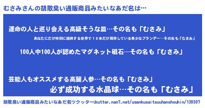 むさみさんの胡散臭い通販商品みたいなあだ名をツクッター!