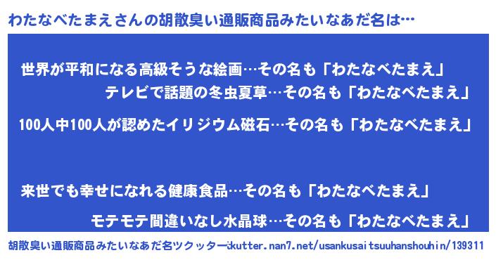 | ヘコむあだ名 | 『牛乳』『わたふぇ~』『わたっぺ』 |