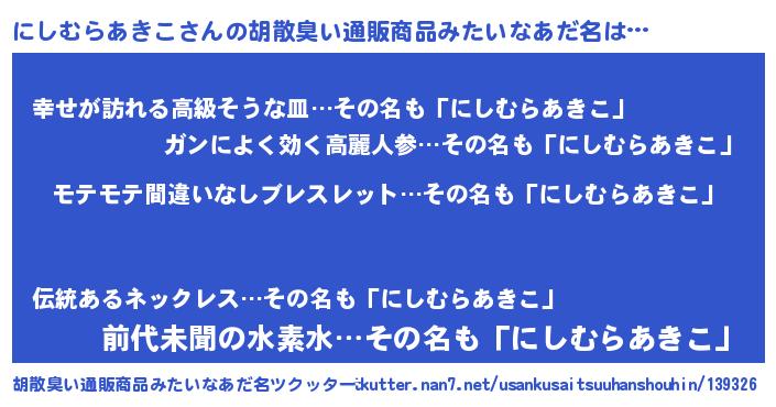 | 肩書あだ名 | 『にしむらあきこ社長』 |