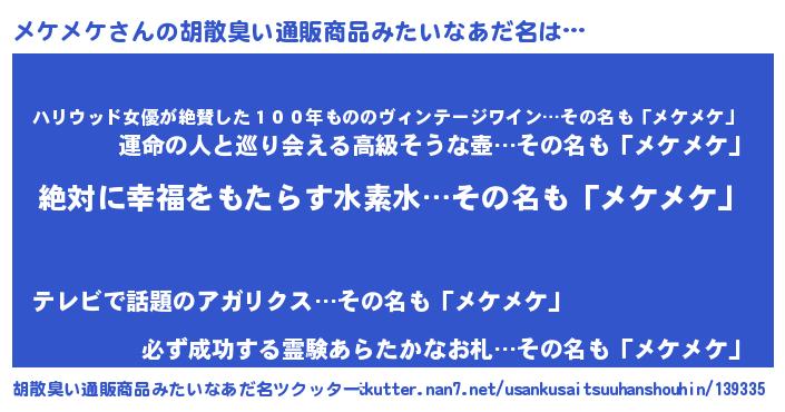 | ヘコむあだ名 | 『メケメケ(遠い目)』『メケにー』 |