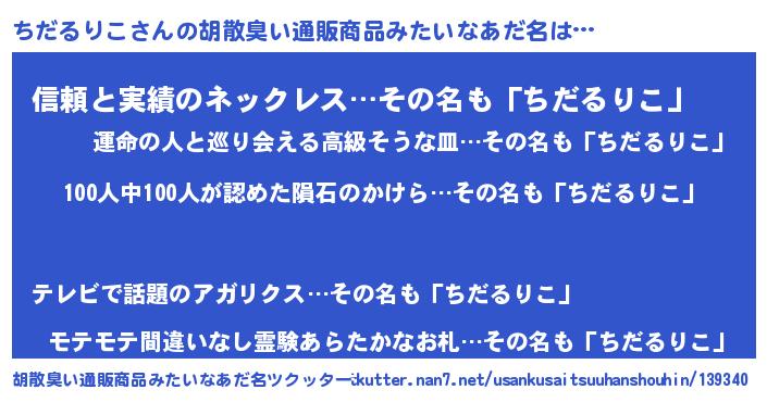 | ヒーロー風カッコイイあだ名 | 『正義の使者ちだるりこ』『暗黒騎士チダ』 |