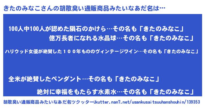 | 意味不明あだ名 | 『住所不定無職きたのみなこ(13歳)』 |