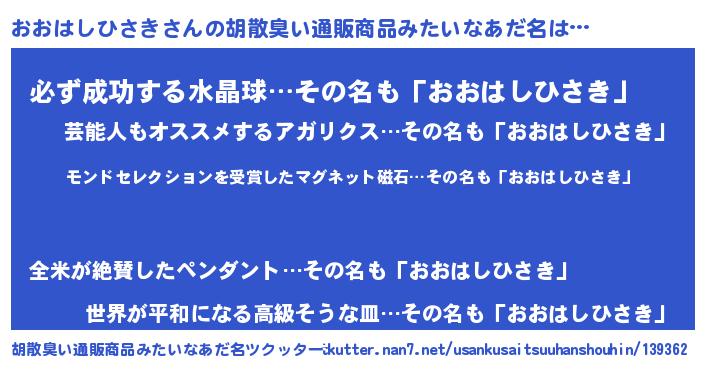 | 意味不明あだ名 | 『眠気覚ましガムおおはしひさき味』 |