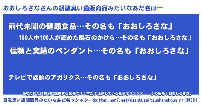 | 意味不明あだ名 | 『とにかく怪しいおおしろさな』 |