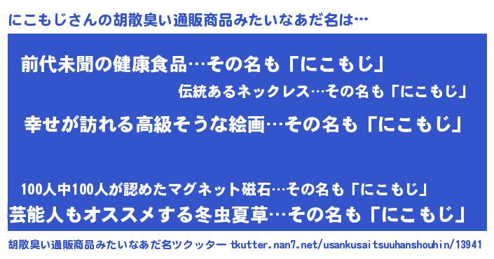 | ヒーロー風カッコイイあだ名 | 『ウルトラにこもじマン』『ネオニコモジ』 |