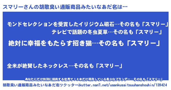 | 意味不明あだ名 | 『永久保存スマリー』『自称スマリー』 |