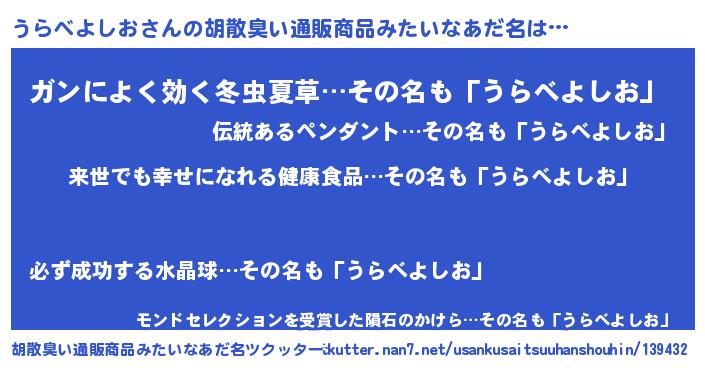 | 意味不明あだ名 | 『永久保存うらべよしお』 |