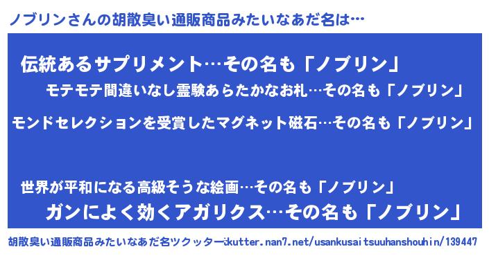 | ヒーロー風カッコイイあだ名 | 『天空の使者ノブリン』『銀牙騎士ノブ』 |