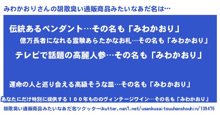 | ヘコむあだ名 | 『みわを』『みわっふぃ~』 |