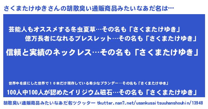 | 欧米人風あだ名 | 『ウサインさくまたけゆき』 |