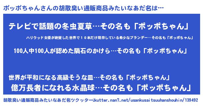 | ヒーロー風カッコイイあだ名 | 『正義の使者ポッポちゃん』 |