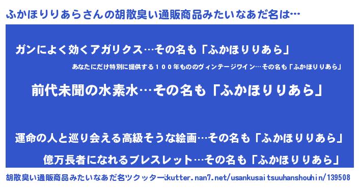 ふかほりりあらさんの胡散臭い通販商品みたいなあだ名をツクッター!
