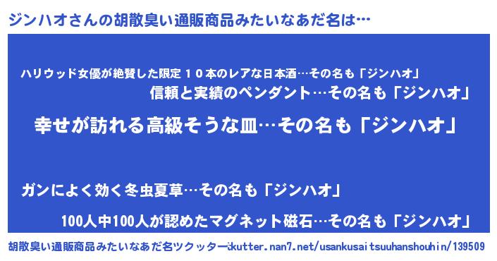 | 意味不明あだ名 | 『ジンハオフォーエバー』『自称ジンハオ』 |