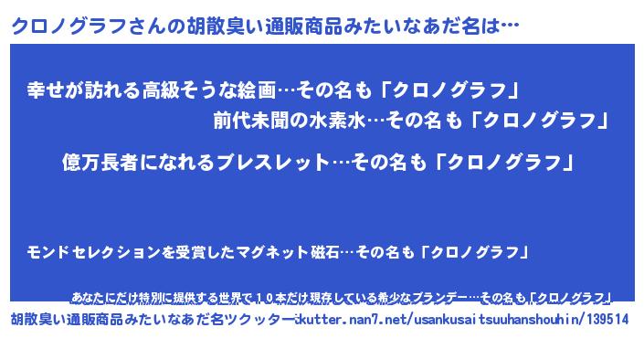 | 伝説のあだ名 | 『封印されし竜騎士クロノグラフ』 |