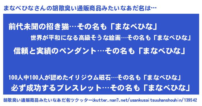 | ヘコむあだ名 | 『まなぷりん』『まなべひな(小並感)』 |