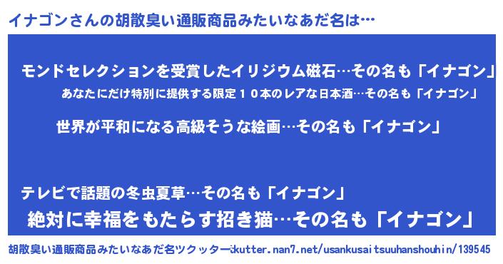 | 意味不明あだ名 | 『イナゴンフォーエバー』『自称イナゴン』 |