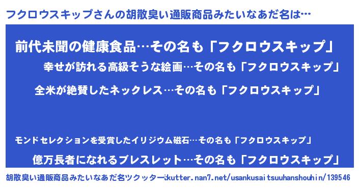 | ポケモン風あだ名 | 『ヒフクロウスキップ』『ゼニフク』 |