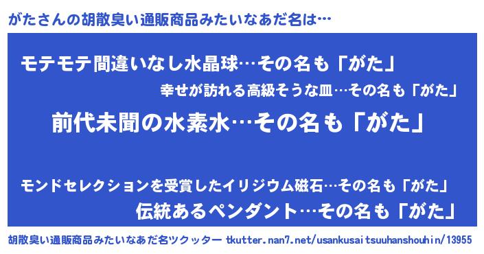 | ヘコむあだ名 | 『がた(遠い目)』『がたにゅー』 |