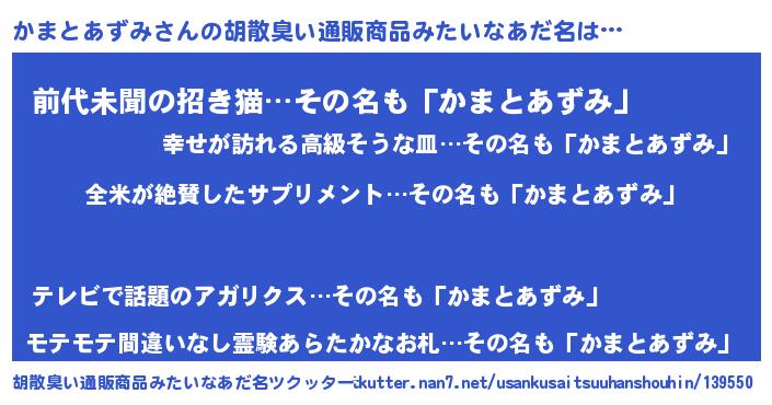 | 意味不明あだ名 | 『とにかく怪しいかまとあずみ』 |