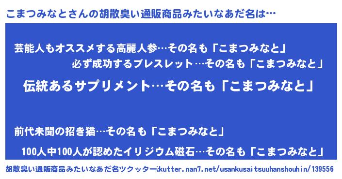 | 肩書あだ名 | 『こまつみなと団長』『こまつみなと総統』 |