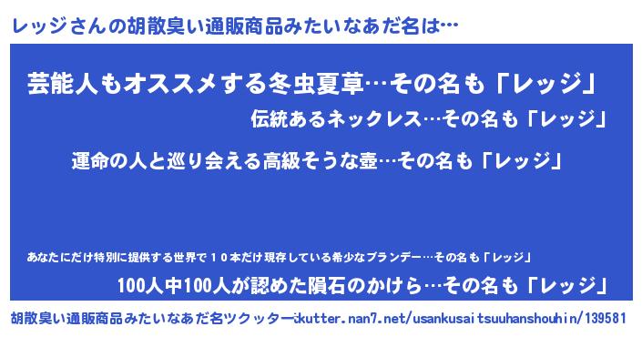 | 意味不明あだ名 | 『レッジフォーエバー』『自称レッジ』 |