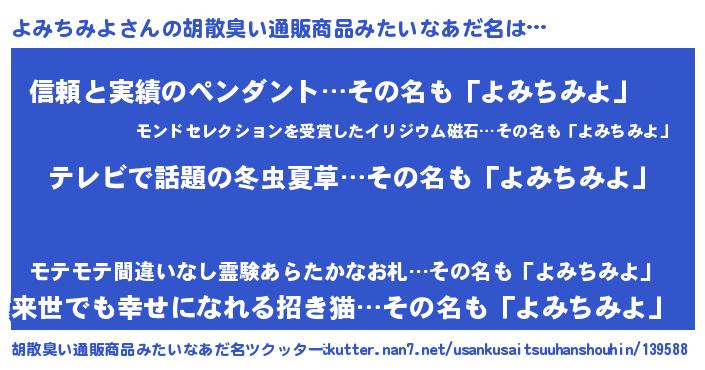 | 意味不明あだ名 | 『自称よみちみよ』『永久保存よみちみよ』 |