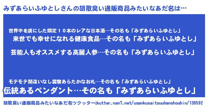 | 意味不明あだ名 | 『自称みずあらいふゆとし』 |