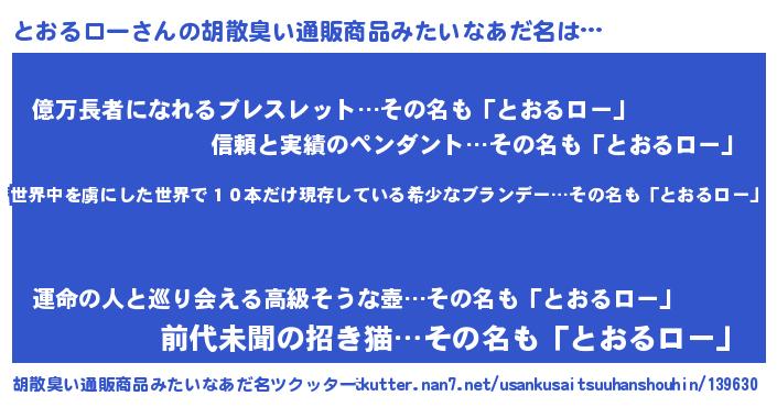 | 男性向けラノベタイトル風あだ名 | 『転生したらとおるローだった件』 |