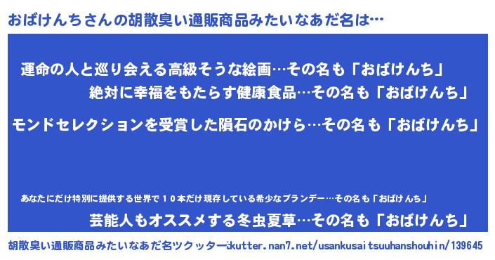 | ヒーロー風カッコイイあだ名 | 『天空の使者おばけんち』『仮面オバダー』 |