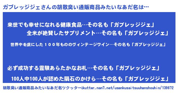 | ヘコむあだ名 | 『ガブレッジジェ(小並感)』『ガブっ子』 |