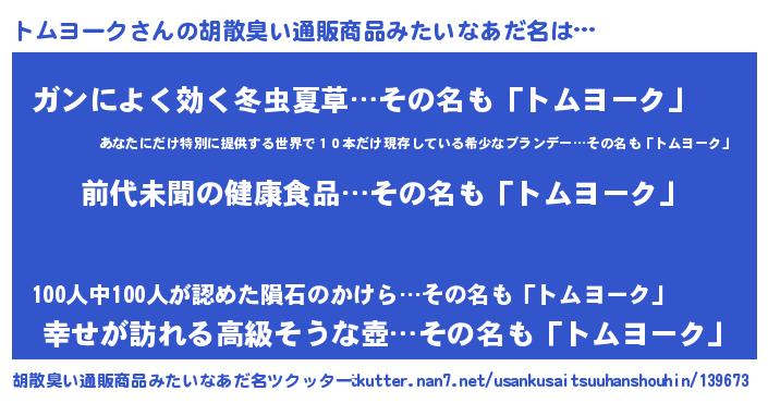 | ヒーロー風カッコイイあだ名 | 『ネオトムヨーク』『仮面トムダー』 |