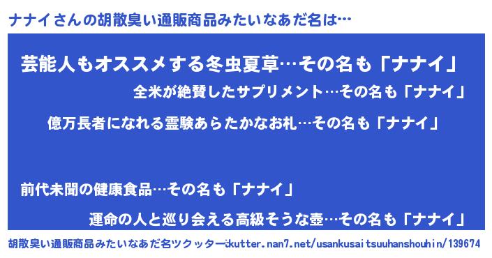 | 意味不明あだ名 | 『ペロリンナナイ』『自称ナナイ』 |