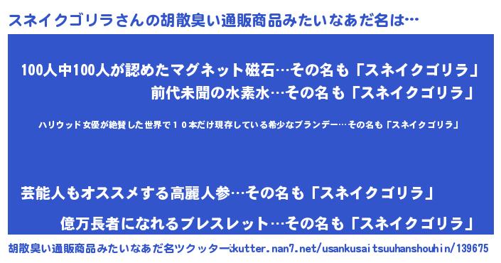 | 意味不明あだ名 | 『住所不定無職スネイクゴリラ(85歳)』 |
