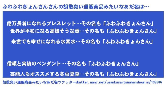 | 意味不明あだ名 | 『永久保存ふわふわきょんさん』 |