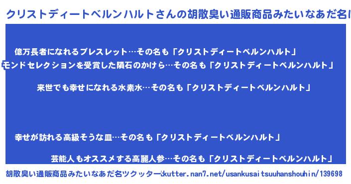 | 意味不明あだ名 | 『永久保存クリストディートベルンハルト』 |