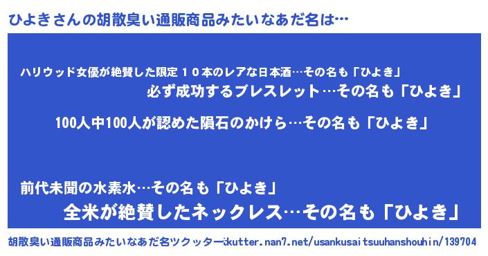 | 欧米人風あだ名 | 『ダニエルひよき』『アンジェラ・ひよき』 |