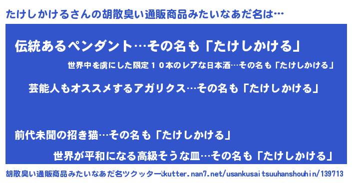 | 意味不明あだ名 | 『自称たけしかける』 |