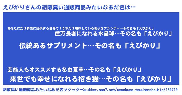 | 意味不明あだ名 | 『とにかく怪しいえびかり』 |