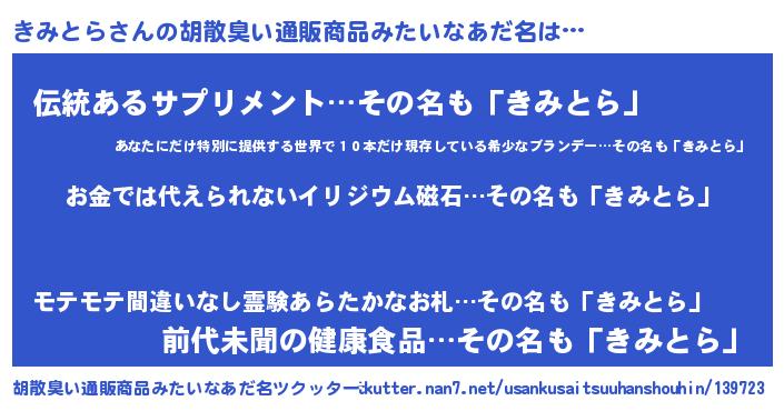 | 女子向けラノベタイトル風あだ名 | 『きみとら恋絵巻』『きみとら様がみてる』 |