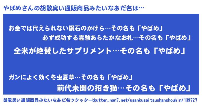 | 意味不明あだ名 | 『とにかく怪しいやばめ』『自称やばめ』 |