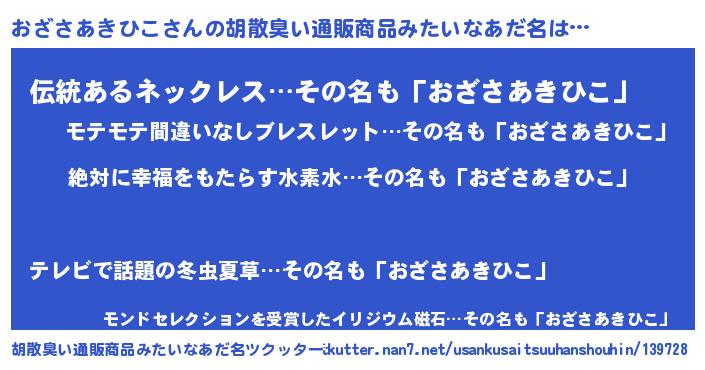 | 意味不明あだ名 | 『永久保存おざさあきひこ』 |