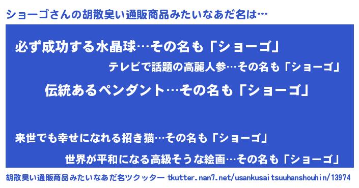 | 意味不明あだ名 | 『とにかく怪しいショーゴ』 |