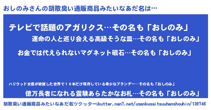 | 肩書あだ名 | 『おしのみ船長』『おしのみディレクター』 |