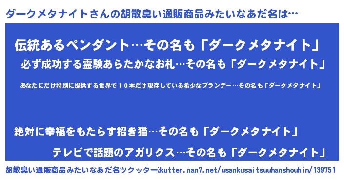 | 男性向けラノベタイトル風あだ名 | 『うちのダークメタナイトが世界を掌握している!』 |