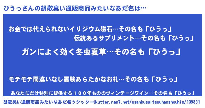 | ヒーロー風カッコイイあだ名 | 『超時空戦士ヒウッ』『慈愛の使者ひうっ』 |