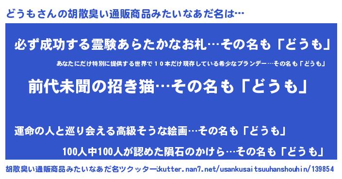 | ヒーロー風カッコイイあだ名 | 『ネオドウモ』『スーパードウモ』 |