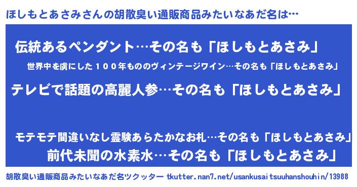| ポケモン風あだ名 | 『ホシセウス』『ヒホシモトアサミ』 |