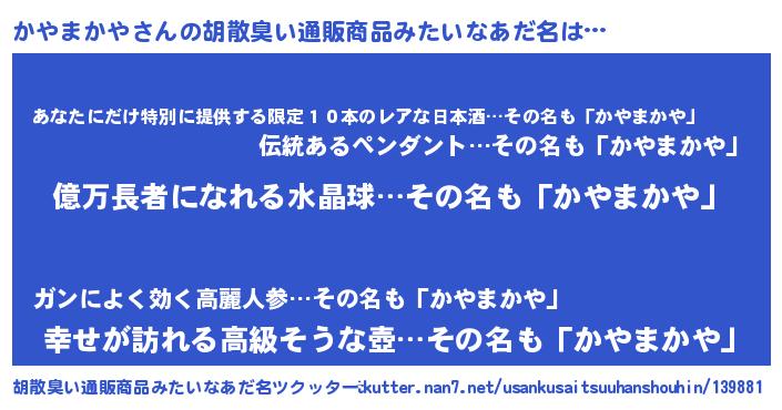 | ヘコむあだ名 | 『かやにゅー』『レバニラ』 |