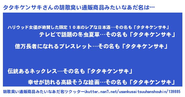 タタキケンサキさんの胡散臭い通販商品みたいなあだ名をツクッター!