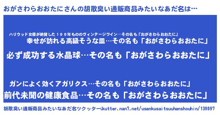 | ヘコむあだ名 | 『おがにゅー』『おがさわらおおたに(笑)』 |